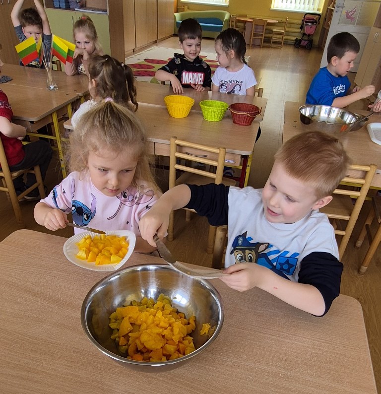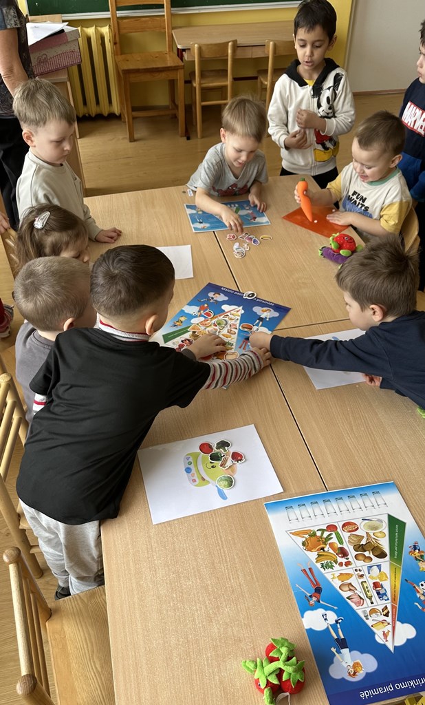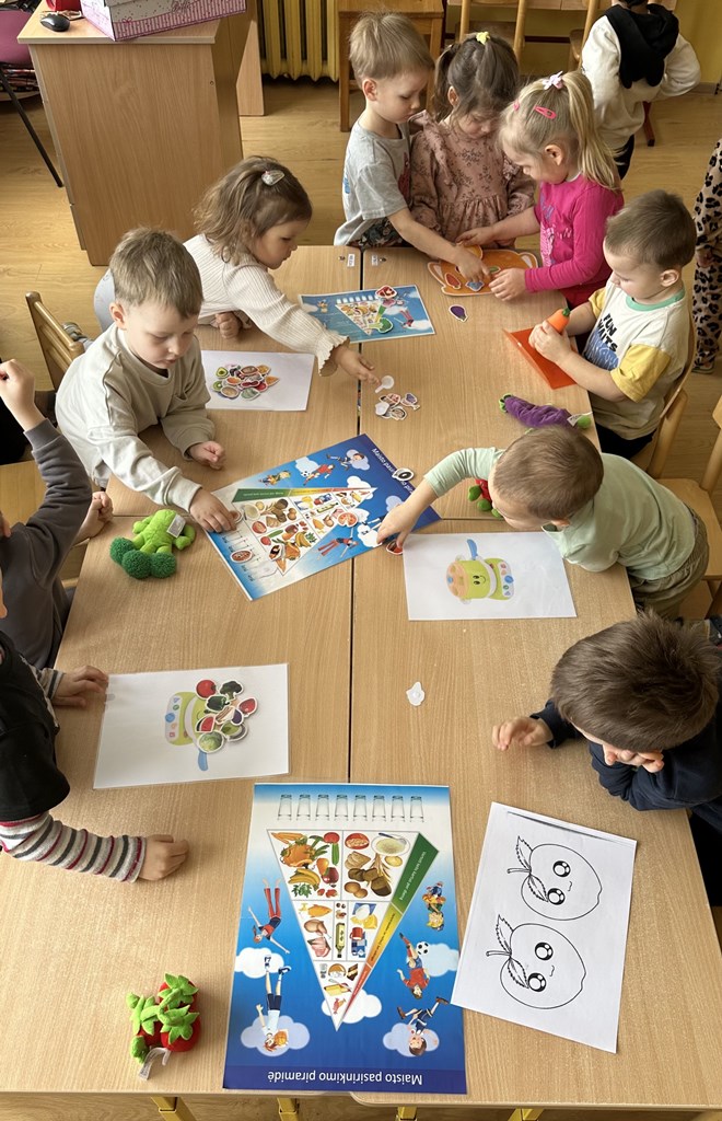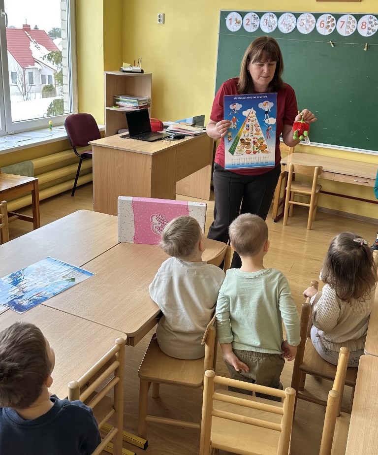 Sveiki maisto produktaiRamygalos lopšelyje-darželyje „Gandriukas“ vasario 24 d. „Drugelių“ grupės vaikams vyko užsiėmimas. Sveikos mitybos įpročiai formuojasi jau ankstyvoje vaikystėje, todėl darželyje didelį dėmesį skiriame vaikų supažindinimui su subalansuotos mitybos principais. Viena iš veiklų – edukacinis užsiėmimas „Sveiki maisto produktai iš piramidės“. Tinkama mityba padeda vaikams augti sveikiems, stiprina imunitetą, suteikia energijos aktyviai veiklai ir ugdo teigiamą požiūrį į maistą. Žaismingai pristatydami maisto pasirinkimo pagrindus, padedame vaikams suprasti, kad sveikas maistas gali būti skanus ir įvairus. Užsiėmimo metu vaikai susipažino su maisto piramide – vaizdinga priemone, parodančia, kokius produktus reikėtų vartoti dažniau, o kuriuos – tik retkarčiais. Vaikai dalyvavo praktinėje užduotyje – iš paveikslėlių sudėliojo savo maisto piramidę, aptarė, kuriai grupei priklauso skirtingi produktai ir kodėl svarbu valgyti įvairų maistą. Vaikai vardijo jiems žinomus vaisius ir daržoves, dalijosi savo mėgstamiausiais pasirinkimais. Jie įvardijo obuolius, bananus, kriaušes, braškes, brokolius, morkas, agurkus, pomidorus, kopūstus ir daugelį kitų. Svarbi veiklos dalis buvo užduotis atskirti, kur yra vaisius, o kur – daržovė. Vaikai mokėsi grupuoti produktus, lygino jų spalvas, formas, skonį. Diskusijos metu jie sėkmingai atskyrė vaisius nuo daržovių ir suprato, kad abi šios grupės yra labai svarbios mūsų sveikatai. Džiaugiamės vaikų aktyvumu, žiniomis ir smalsumu. Tokios veiklos padeda formuoti sveikos mitybos pagrindus bei ugdo gebėjimą sąmoningai rinktis sveikatai palankų maistą.
