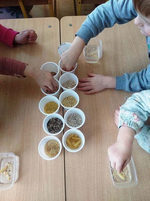 Gamtos sekų kelionė„Ežiukų“ grupės vaikučiai, prisirinkę gamtinės medžiagos, sudarinėjo sekas iš gamtinės medžiagos pagal pavyzdį – tai paprasta, bet labai turtinga ugdymo veikla, kuri vienu metu lavina matematinius gebėjimus, dėmesį, kalbą, motoriką ir ryšį su gamta. Rugsėjo paskutinę savaitę vykdydami projektą „Rudens skoniai“ štampavo obuolių skiltelėmis. Ši veikla sukūrė vaikams džiugią, atradimų kupiną meninę patirtį.