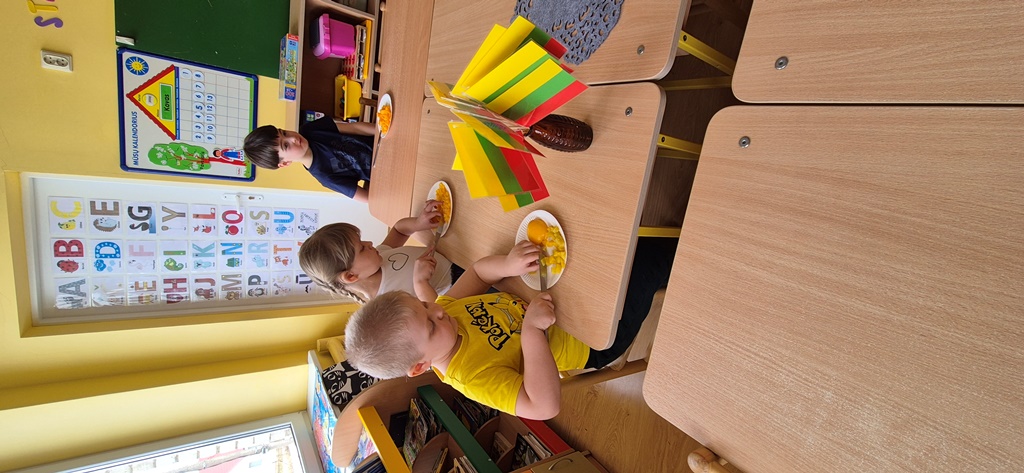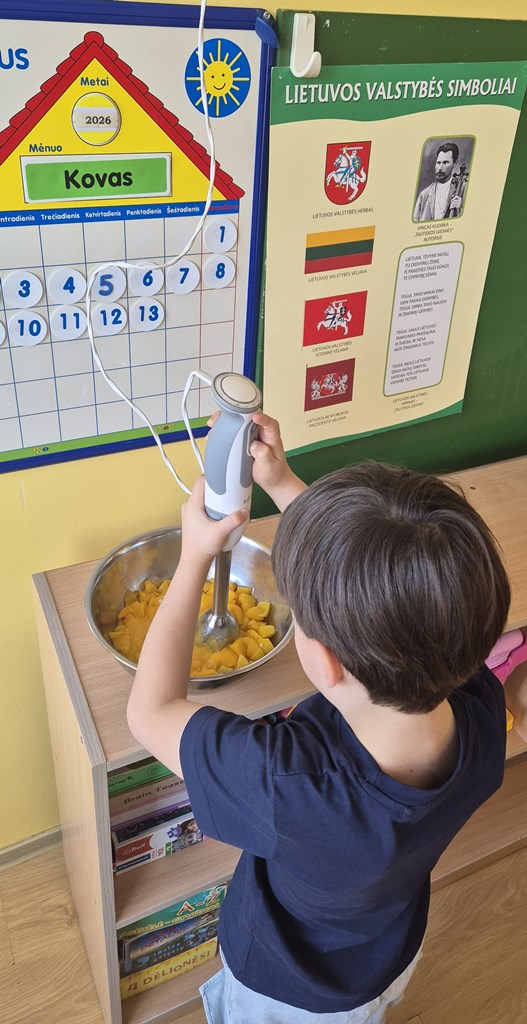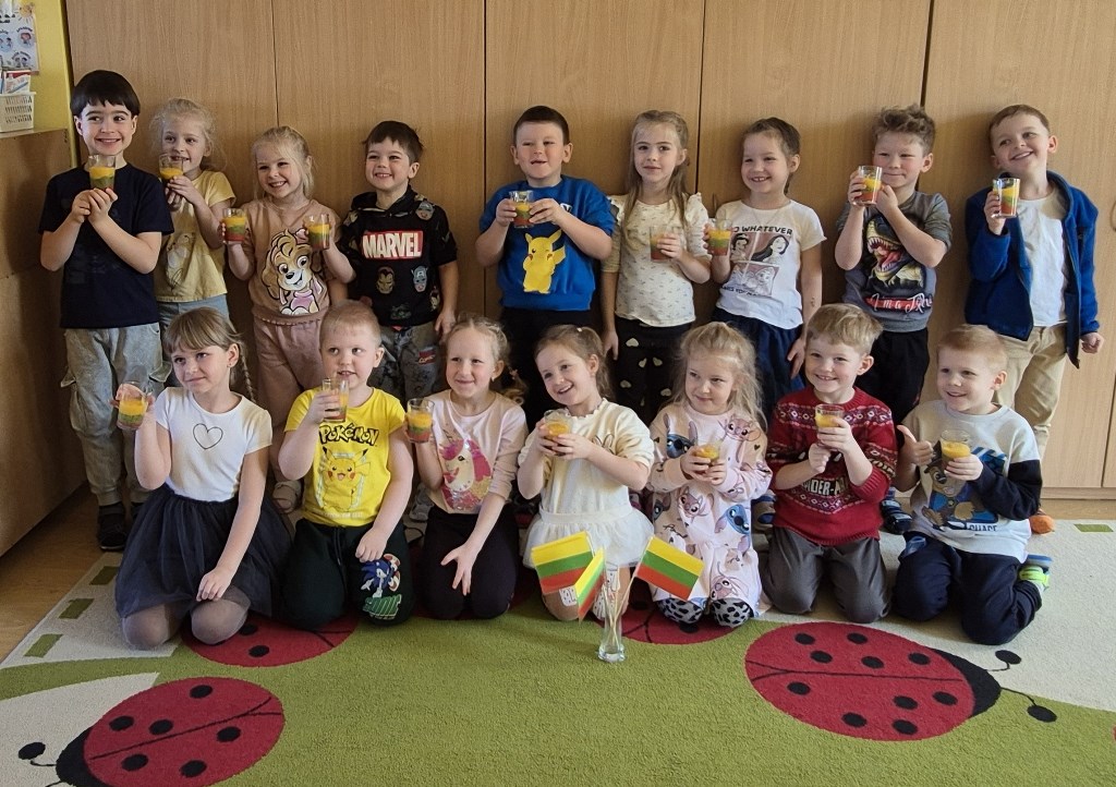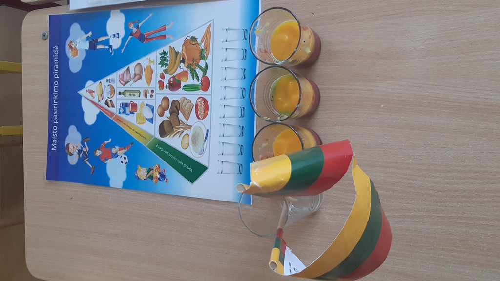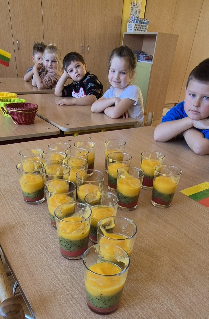 Vaisių kokteilis Lietuvos trispalvės spalvomisKovo 11-oji – ypatinga diena Lietuvai, kai minime Lietuvos nepriklausomybės atkūrimą ir džiaugiamės savo šalies laisve. Mūsų Ramygalos lopšelio-darželio „Gandriukas“ su „Kiškučių“ grupės vaikais šiai gražiai progai paminėti vaikams vyko smagus edukacinis–praktinis užsiėmimas „Trispalvis vaisių kokteilis“. Užsiėmimo metu visuomenės sveikatos specialistė vaikams pasakojo apie vaisių naudą organizmui ir juose esančius vitaminus. Mažieji aktyviai klausėsi, dalijosi savo žiniomis ir drąsiai įsitraukė į veiklą – patys pjaustė vaisius, o vėliau juos sublendravome ir pasigaminome gardų vaisių kokteilį. Iš trijų skirtingų vaisių spalvų, atsargiai sluoksniuodami į stiklinaites sudėjome Lietuvos trispalvės vėliavos spalvas. Vaikai smalsiai ragavo pagamintą kokteilį ir džiaugėsi ne tik jo skoniu, bet ir spalvingu rezultatu. Užsiėmimo metu mažieji sužinojo, kodėl vaisius svarbu valgyti kasdien ir kaip jie padeda augti stipriems bei sveikiems. Šis užsiėmimas ne tik ugdė sveikos mitybos įgūdžius, bet ir leido vaikams smagiai švęsti mūsų Tėvynės dieną – su spalvomis, skoniu ir šypsenomis!