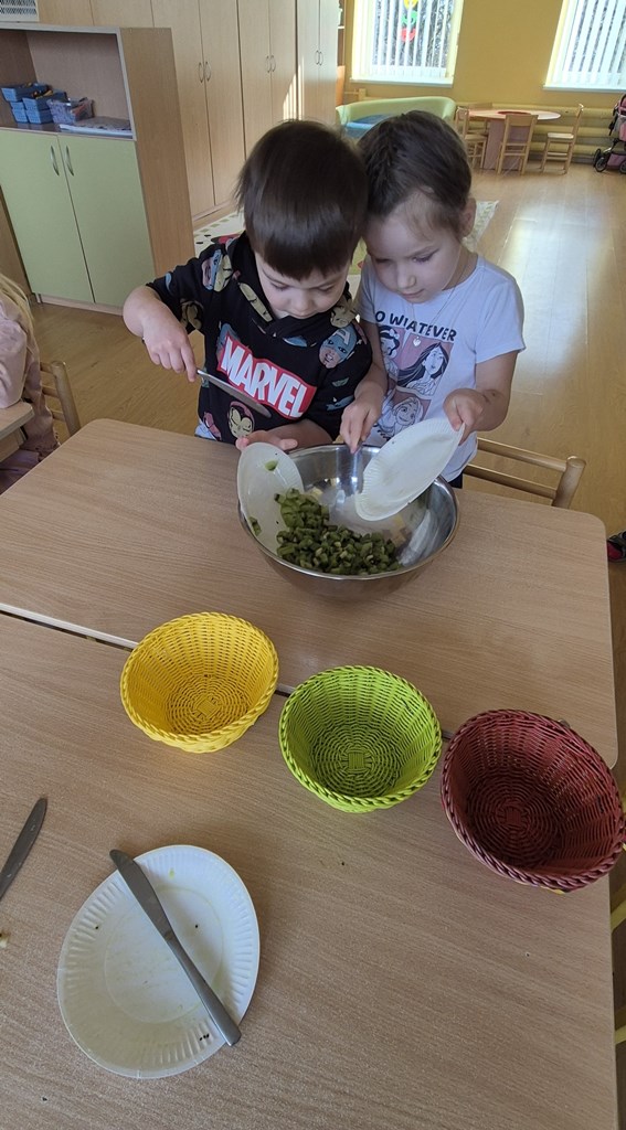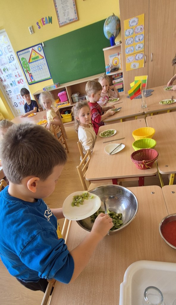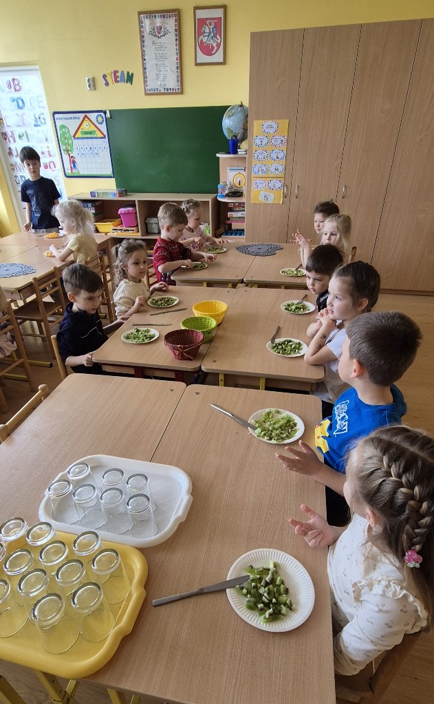 Sveiki maisto produktaiRamygalos lopšelyje-darželyje „Gandriukas“ vasario 24 d. „Drugelių“ grupės vaikams vyko užsiėmimas. Sveikos mitybos įpročiai formuojasi jau ankstyvoje vaikystėje, todėl darželyje didelį dėmesį skiriame vaikų supažindinimui su subalansuotos mitybos principais. Viena iš veiklų – edukacinis užsiėmimas „Sveiki maisto produktai iš piramidės“. Tinkama mityba padeda vaikams augti sveikiems, stiprina imunitetą, suteikia energijos aktyviai veiklai ir ugdo teigiamą požiūrį į maistą. Žaismingai pristatydami maisto pasirinkimo pagrindus, padedame vaikams suprasti, kad sveikas maistas gali būti skanus ir įvairus. Užsiėmimo metu vaikai susipažino su maisto piramide – vaizdinga priemone, parodančia, kokius produktus reikėtų vartoti dažniau, o kuriuos – tik retkarčiais. Vaikai dalyvavo praktinėje užduotyje – iš paveikslėlių sudėliojo savo maisto piramidę, aptarė, kuriai grupei priklauso skirtingi produktai ir kodėl svarbu valgyti įvairų maistą. Vaikai vardijo jiems žinomus vaisius ir daržoves, dalijosi savo mėgstamiausiais pasirinkimais. Jie įvardijo obuolius, bananus, kriaušes, braškes, brokolius, morkas, agurkus, pomidorus, kopūstus ir daugelį kitų. Svarbi veiklos dalis buvo užduotis atskirti, kur yra vaisius, o kur – daržovė. Vaikai mokėsi grupuoti produktus, lygino jų spalvas, formas, skonį. Diskusijos metu jie sėkmingai atskyrė vaisius nuo daržovių ir suprato, kad abi šios grupės yra labai svarbios mūsų sveikatai. Džiaugiamės vaikų aktyvumu, žiniomis ir smalsumu. Tokios veiklos padeda formuoti sveikos mitybos pagrindus bei ugdo gebėjimą sąmoningai rinktis sveikatai palankų maistą.