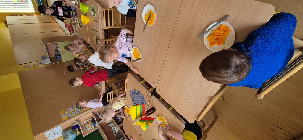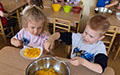 „Skanauk, ragauk ir sveikas auk!“Spalio mėnesį „Ežiukų“ grupėje buvo vykdomas sveikatinimo projektas „Skanauk, ragauk ir sveikas auk!“. Vaikai tyrinėjo įvairias daržoves per 5 savo pojūčius, diskutavo kurias iš jų jie augina namuose. Grupėje pastebėjome, kad vaikai mažai valgo vaisių ir daržovių, tad vieną savaitę skyrėme diagramos pildymui, kurioje ugdytiniai galėjo savarankiškai žymėti lipduku ar tą dieną valgė vaisių/daržovių ar ne. Baigę pildyti su vaikais diskutavome ir padarėme išvadą, kad pasistengus - galime suvalgyti viską! Ugdytiniai projekto metu taip pat kūrė įvairius meninius darbelius, eksperimentavo, spaudė obuolių ir morkų sultis, bei lygino jas tarpusavyje.