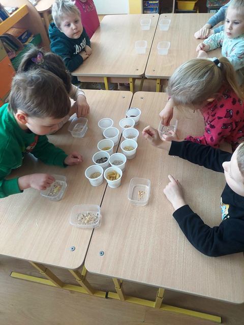 „Ledo mozaikos paukšteliams“„Kiškučių“ grupės vaikai tyrinėjo vandens savybes – stebėjo, kaip jis užšąla ir vėl tirpsta. Kurdami ledo mozaikas iš kruopų, makaronų ir džiovintų gėlių, eksperimentavo su įvairiomis medžiagomis, dėliojo kompozicijas, lygino formas ir dydžius. Vaikai aptarė, kas nutiks, kai ledas ištirps, ir džiaugėsi galėdami prisidėti prie paukštelių globos. Ištirpus ledui, šios natūralios vaišės pradžiugins ir pamaitins paukštelius.